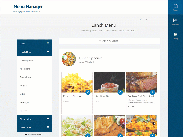 Controlla la grafica e i contenuti del tuo menù